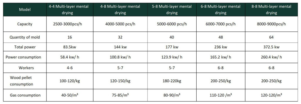 The above is the drying cost calculation of 3,000 pieces per hour for reference only and may be based on local price conditions.